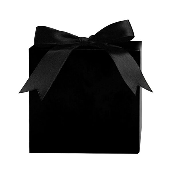 9 oz promotional candle in elegant vessel shape, featuring soy wax, black glass and matching black gift box. Optional bow tied ribbon upon request, add $1.25