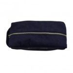 Quality denim material, nice shape to hold a lot of travel amenities. Features silver zipper, includes your choice of liner options, or upgrade to custom liner (see Upgrade Options). Silkscreen logo on front.