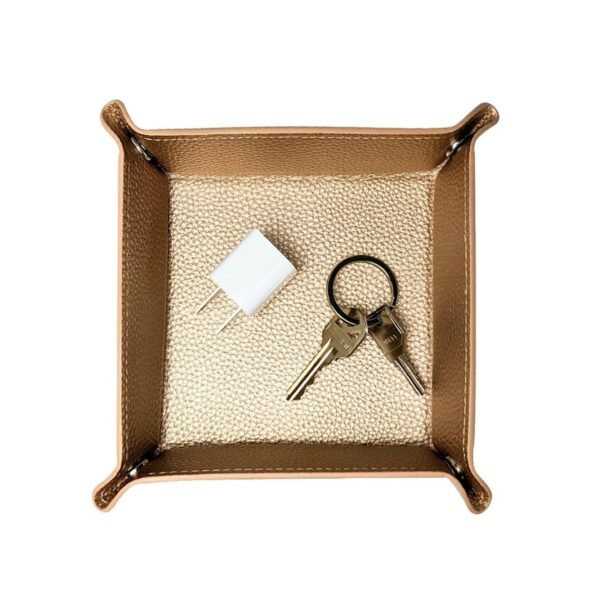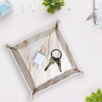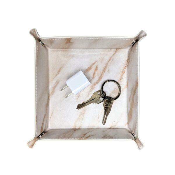 Deboss or screen print your logo on this deluxe faux leather valet tray, size 7.75″ square (5.5″ when folded). NOTE: size can be adjusted, ask us for custom quote. Ships flat in protective individual polybags, with many colorful soft faux leather options, such as marble leatherette design, leopard animal print leatherette design, gold and rose gold designs, and more. The 2.3″ square logo can be placed in the center top or center bottom, or printed on leatherette patch as an upgrade option.