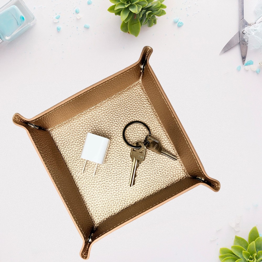 Deboss or screen print your logo on this deluxe faux leather valet tray, size 7.75″ square (5.5″ when folded). NOTE: size can be adjusted, ask us for custom quote. Ships flat in protective individual polybags, with many colorful soft faux leather options, such as marble leatherette design, leopard animal print leatherette design, gold and rose gold designs, and more. The 2.3″ square logo can be placed in the center top or center bottom, or printed on leatherette patch as an upgrade option.