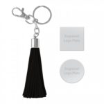 4"L tassel with 0.75" Metal Logo Plate and 1" Diameter keychain, Individually Polybagged 3RS