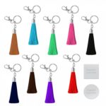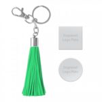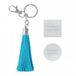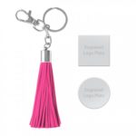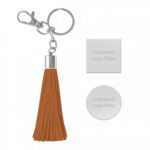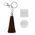 These stylish tassel keychains are made from quality leather material. Add your logo to the square or round logo plate, and your choice of silver or gold. Custom made tassel keychains with personalized logo, printed in bulk for your next event, giveaway, or promotion. Available in a wide variety of great colors.