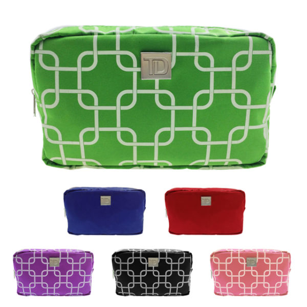 This durable microfiber case comes in a wide variety of colors, with optional all over imprint or 1 location imprint, it’s up to you! Features premium designer look with a gold or silver accented metal logo plate on front and matching zipper pull. Solid color liner matches your bag or your logo, up to your color preference!