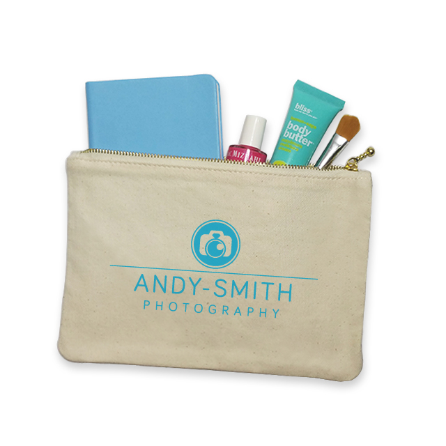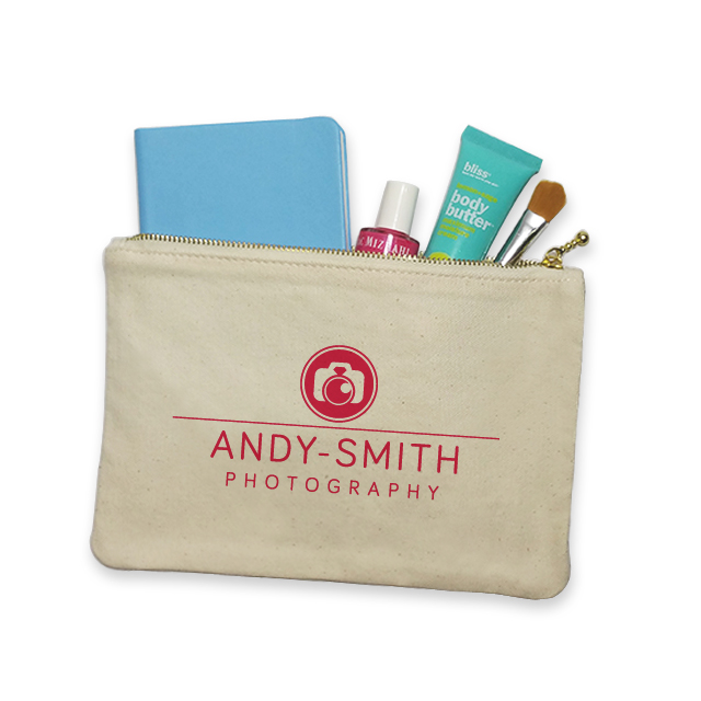 This 10 oz durable cotton canvas cosmetic bag has a decorative gold top zipper and size of 9″W x 7″H with imprint area as wide as the bag size. You may notice the bottom corner of our bags are rounded for longer term durability, made to last. Much heavier in weight, higher quality construction than a similar bag on the market, with better price point.