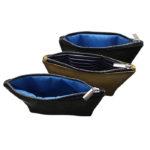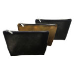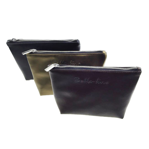 Smooth leatherette pouch has premium appeal with zipper #5 silver zipper and zipper pull, with gusset for a roomy main body compartment. Includes your choice of liner options, or upgrade to custom liner (see Upgrade Options). Silkscreen logo on front.