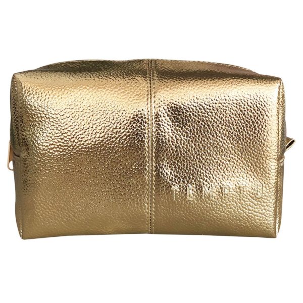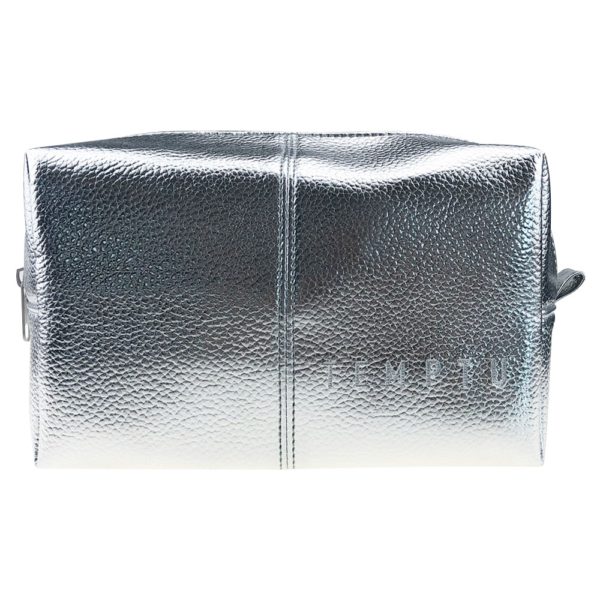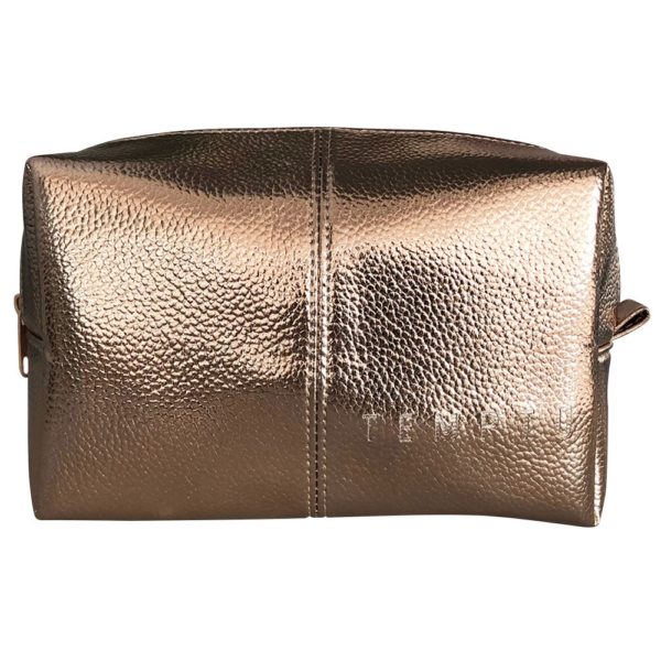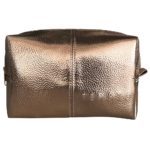 High quality leatherette material comes with large silver teeth zipper. Great travel bag, amenities bag, in a dopp kit style body shape. Can be in solid color or metallic color such as silver, gold or rose gold. Allover imprinting is also available. Debossed logo recommended.